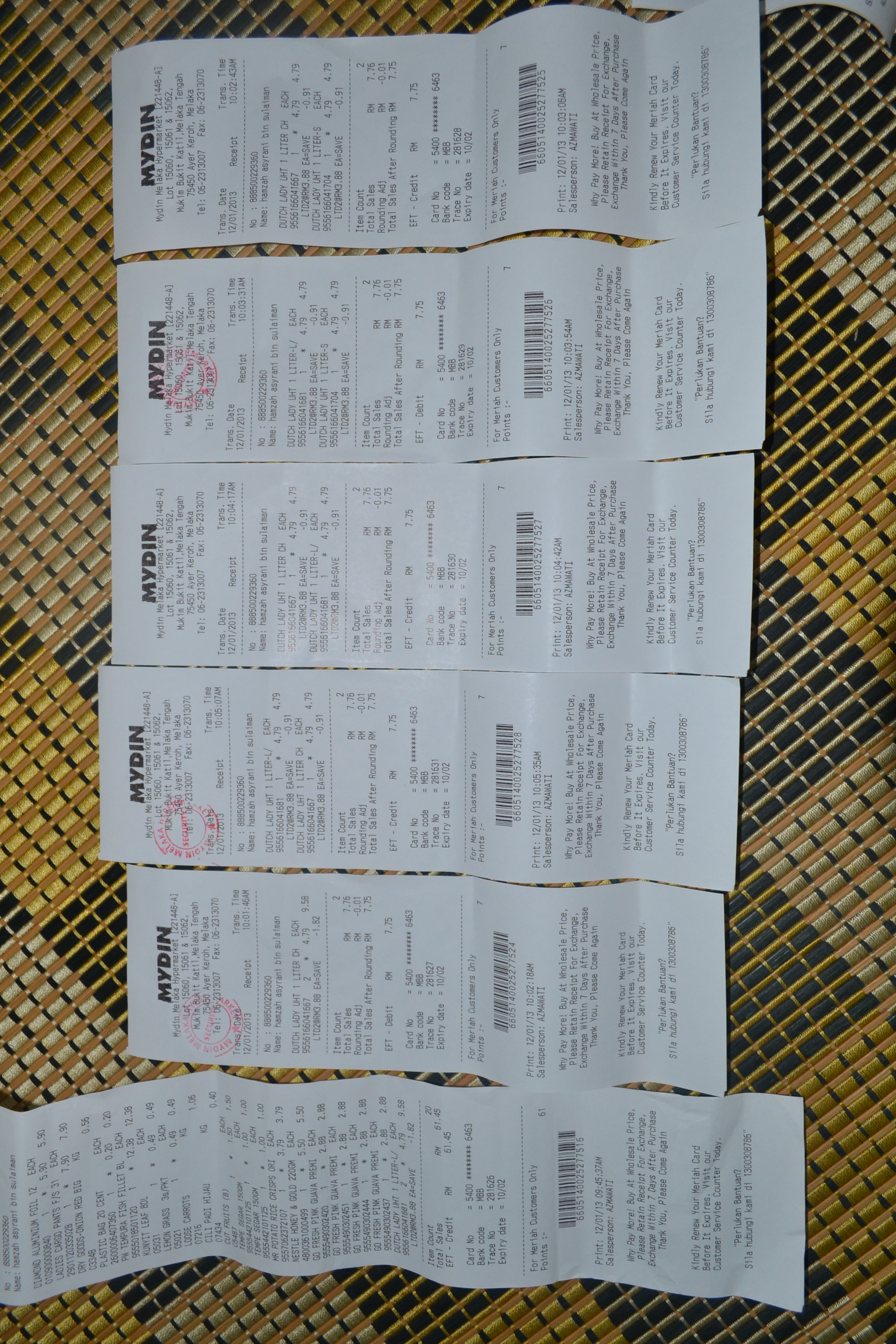 Disertakan resit yang banyak pada hari tersebut.