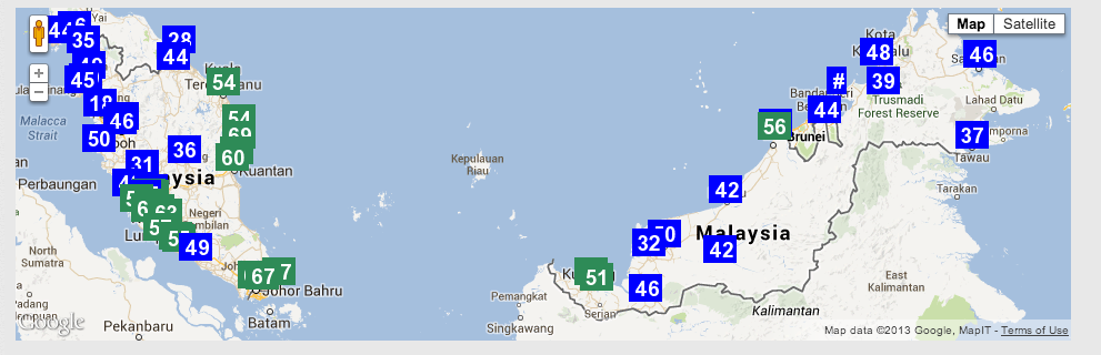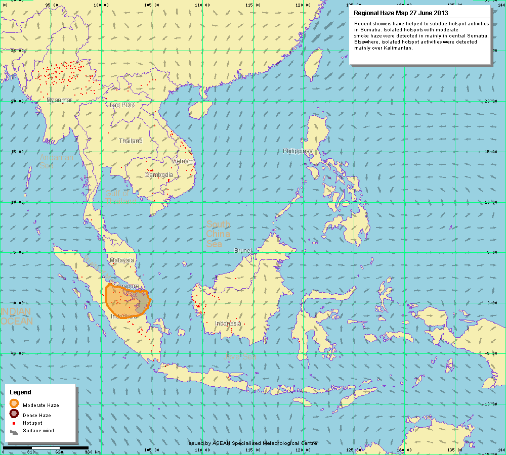 Malah di Sumatera juga kelihatan Moderate Haze yang semakin mengecil berbanding beberapa hari sebelumnya.