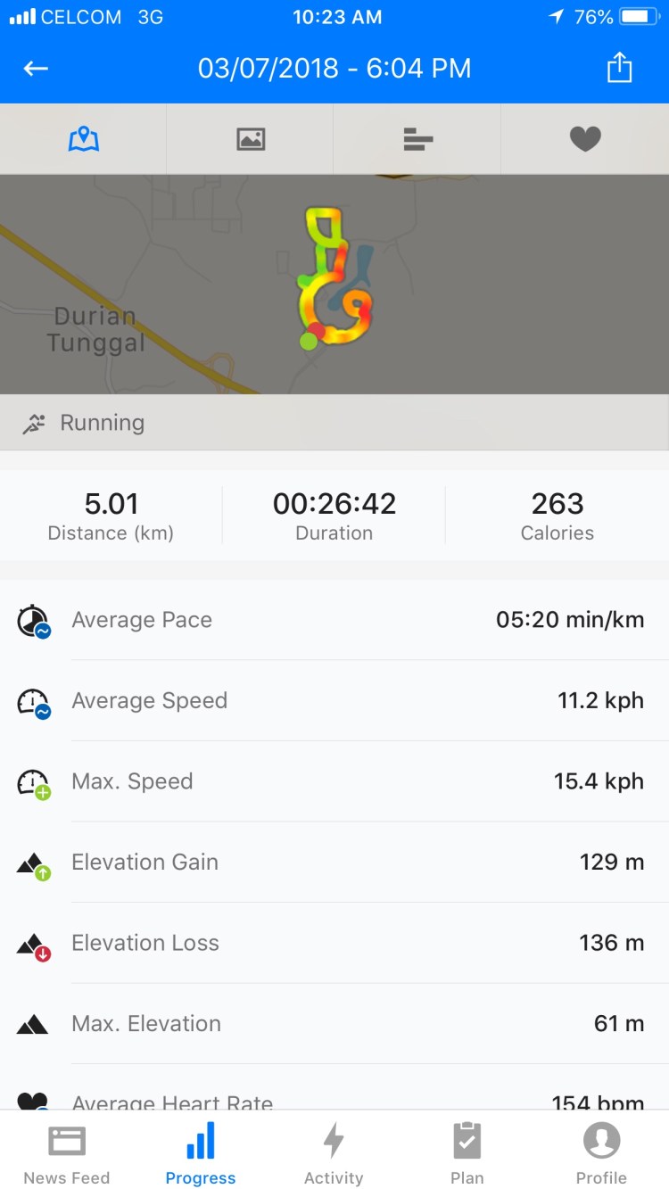 Larian di trek adalah mendatar dan kurang mencabar tetapi beza 10 minit itu adalah hasil kerja keras menmpertingkatkan larian dalam masa 2 tahun.