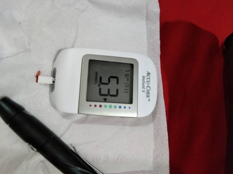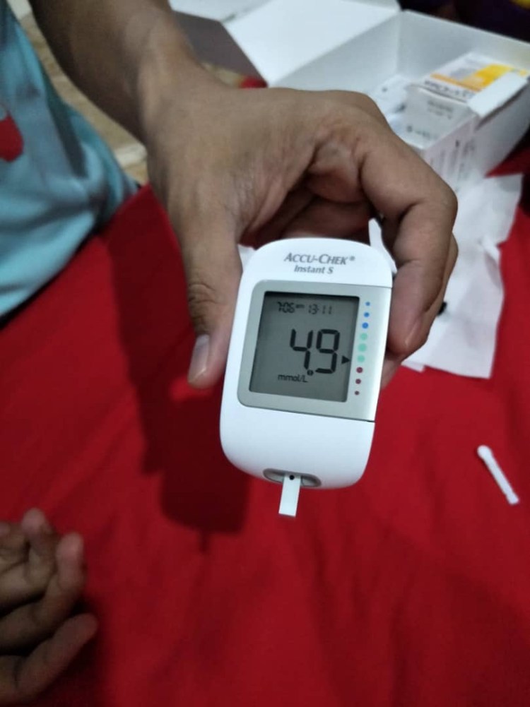 Maksud aku, aku ada alat nak sukat gula dalam darah (yang kat jari tu) dan sebelum2 ni selalu check. Biasanya dlm 4.3 atau 4.4 aje.