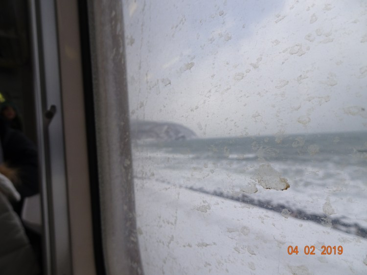 Dugaan nak tengok Dolphine ni adalah sewaktu nak bergerak ke tempat Dolphin kena lalu jambatan yang lalu berangin kuat. Topi anak aku tercicir dan tak dapat diselamatkan kerana ditiup sehingga jatuh ke satu tempat agak jauh tapi agak sukar nak amik takut tenggelam dengan salji. Maka dibiarkan sahaja dan guna topi lain yang ada.
