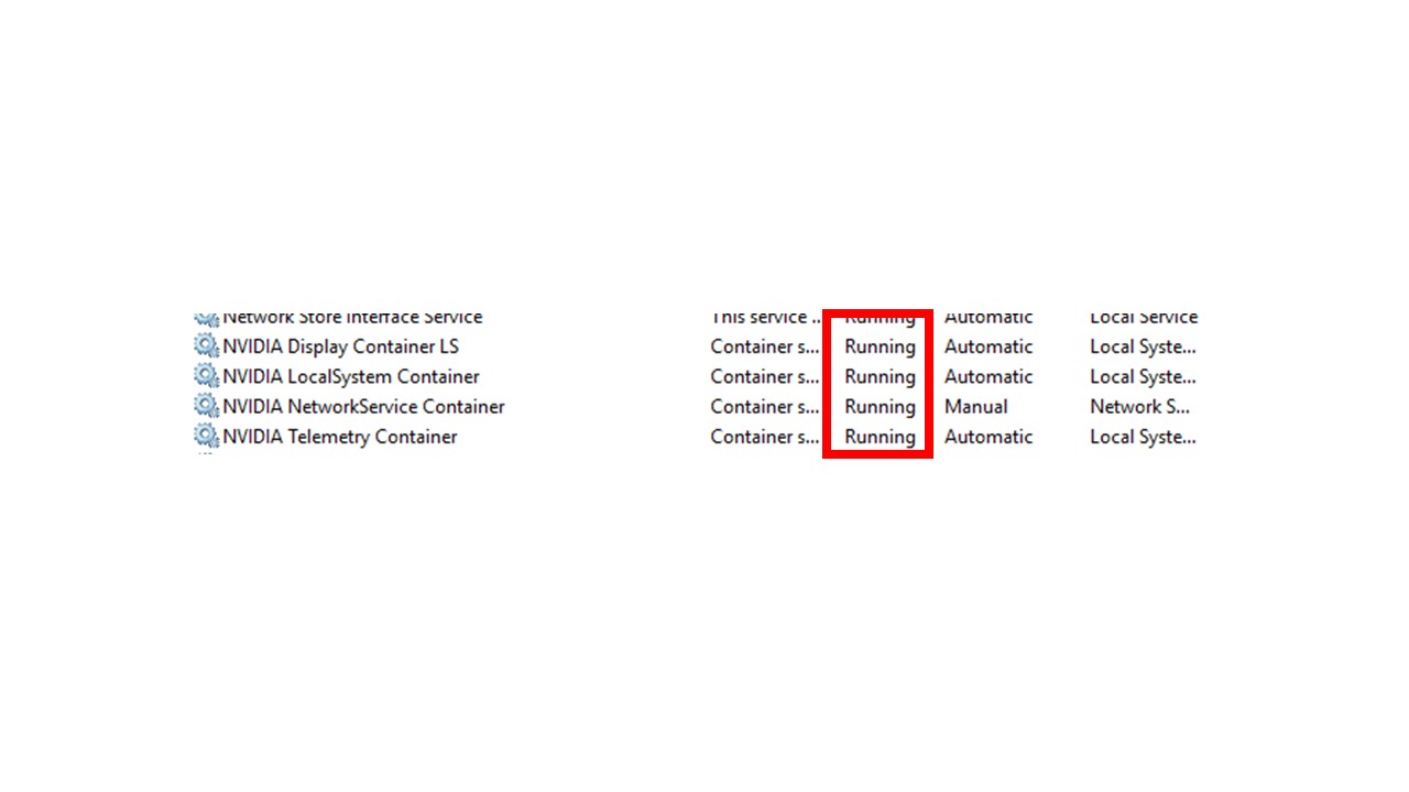 a) Nvidia Display service container b) Nvidia Local System Container c) Nvidia Network Service Container