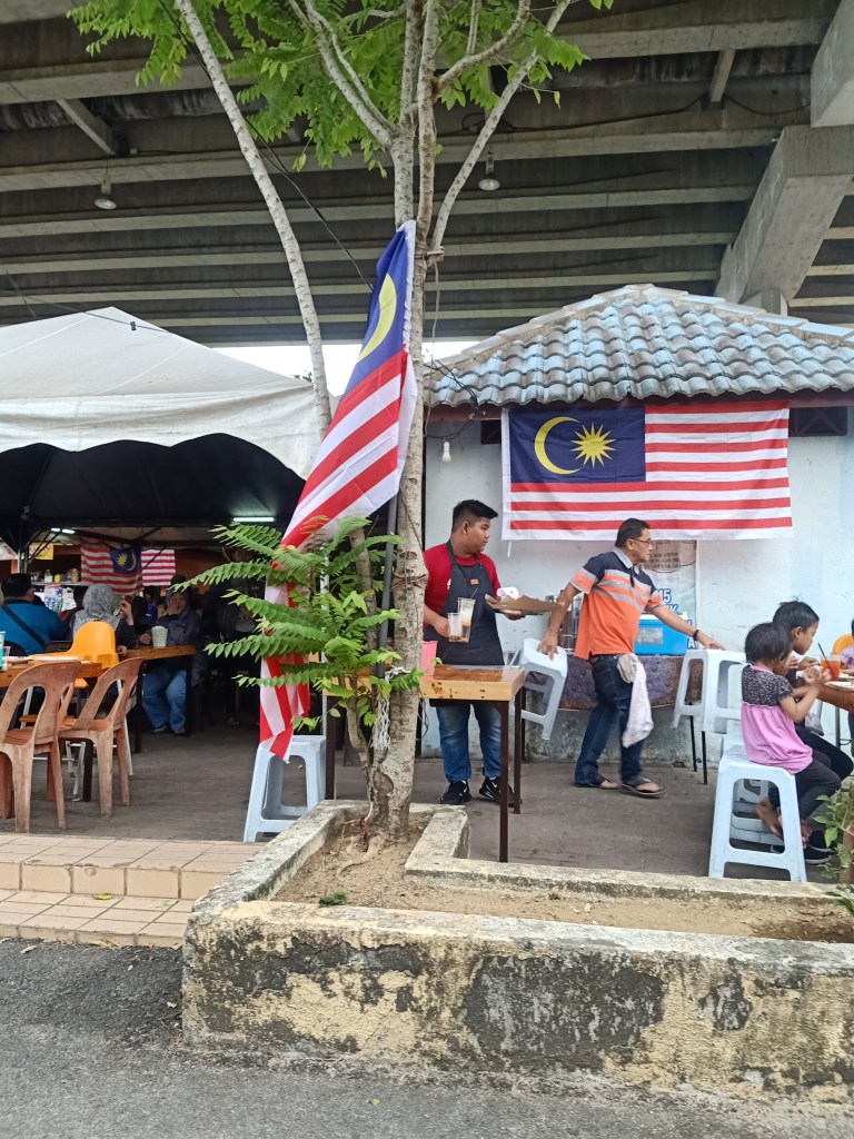 Sarapan pagi kat sini. Bawah fly over. Dekat aje dengan Nasi Dagang Atas Tol Cawangan 3.