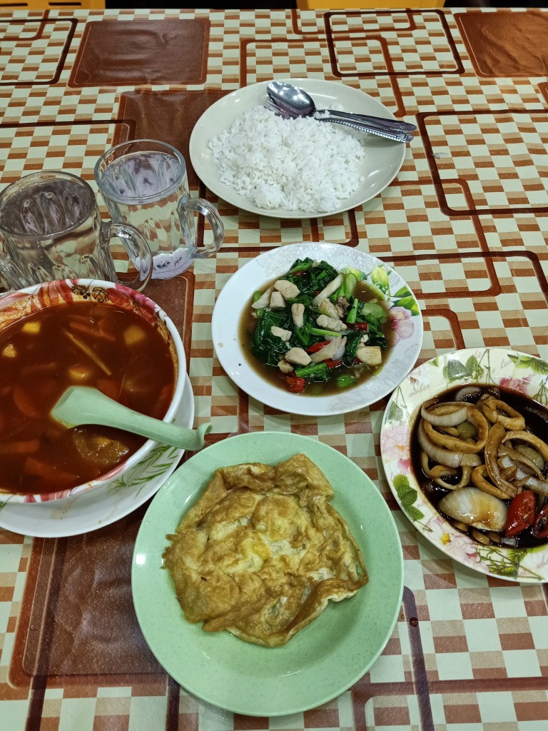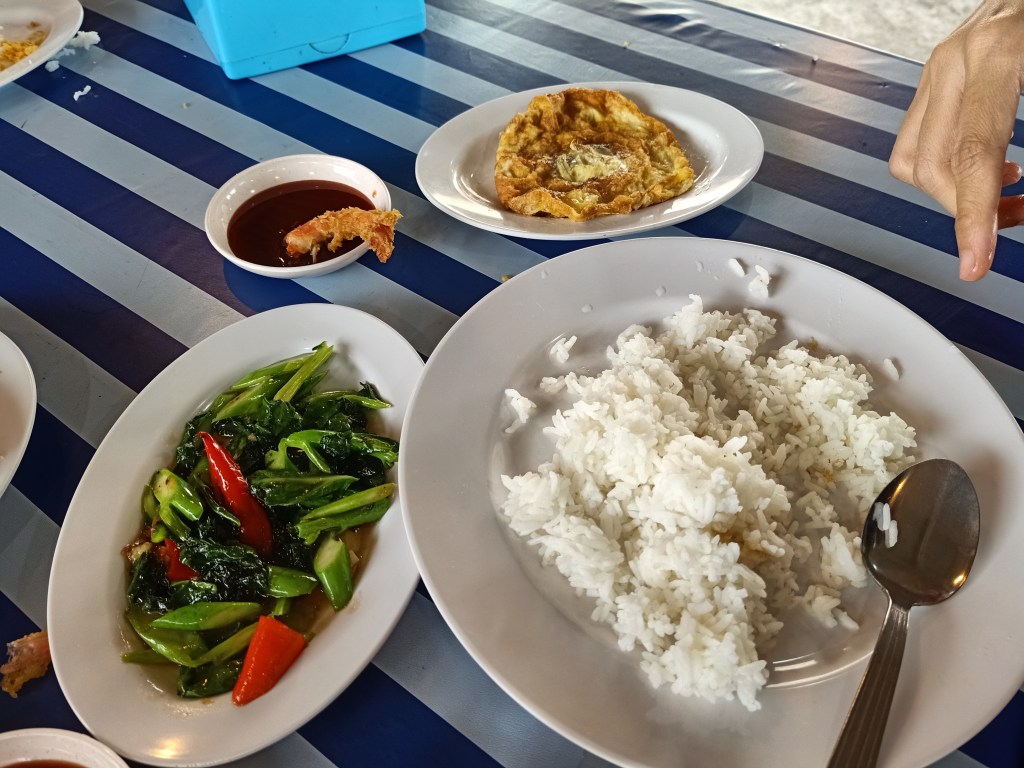 - Hujan turun dgn lebatnya dalam 1 jam kot dan kami ambil keputusan makan aje kat area depan pantai tu. Banyak aje kedai celup tepung yang biasa2 depan tu pepetang. Tapi kami makan tomyam dan bungkus nasi goreng kampung dan pattaya.