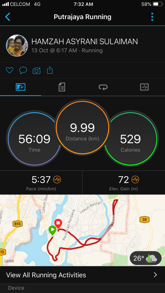 InsyaAllah by next week selepas Deepavali akan sambung training balik 5km/10km/15km seminggu.