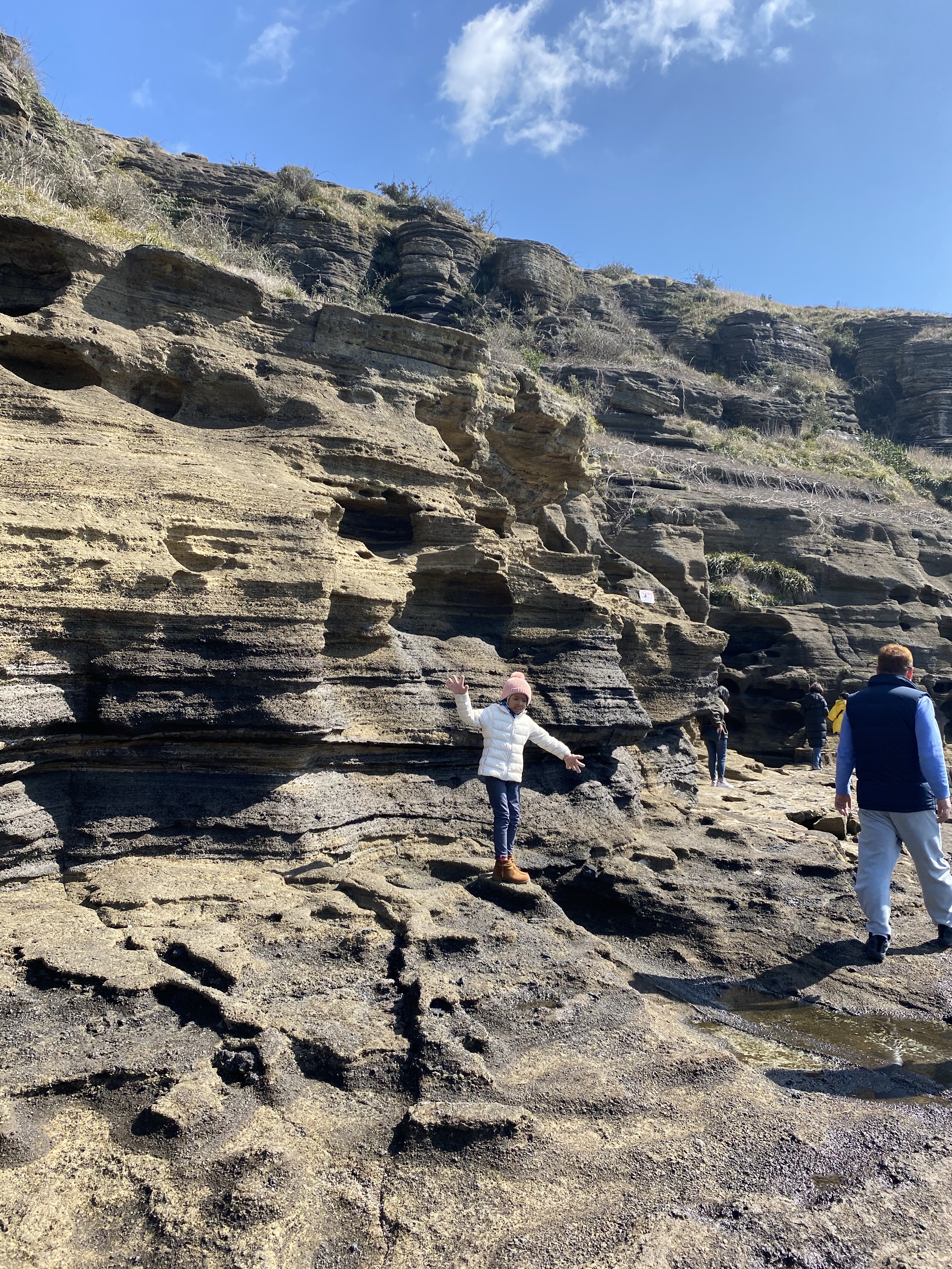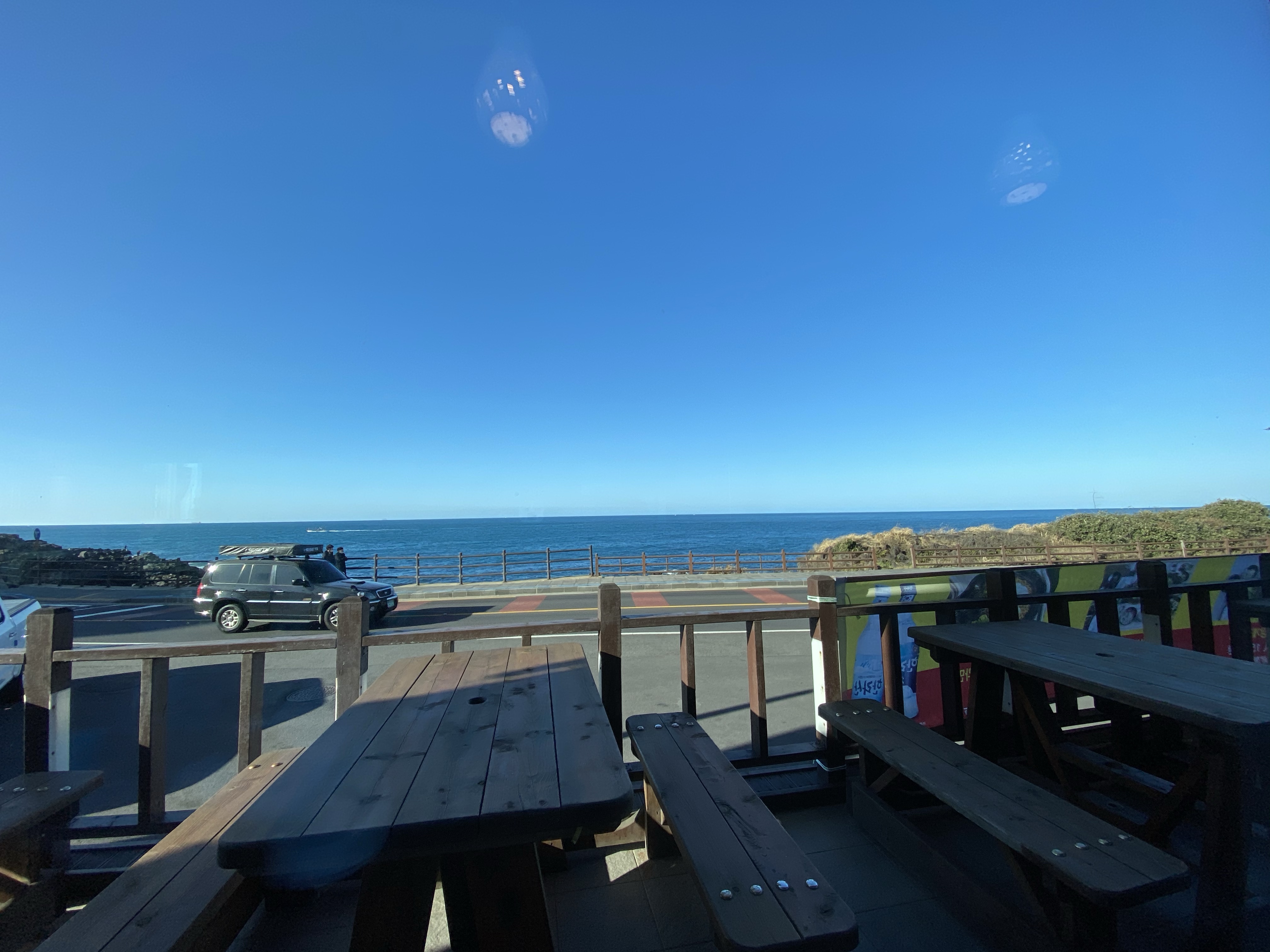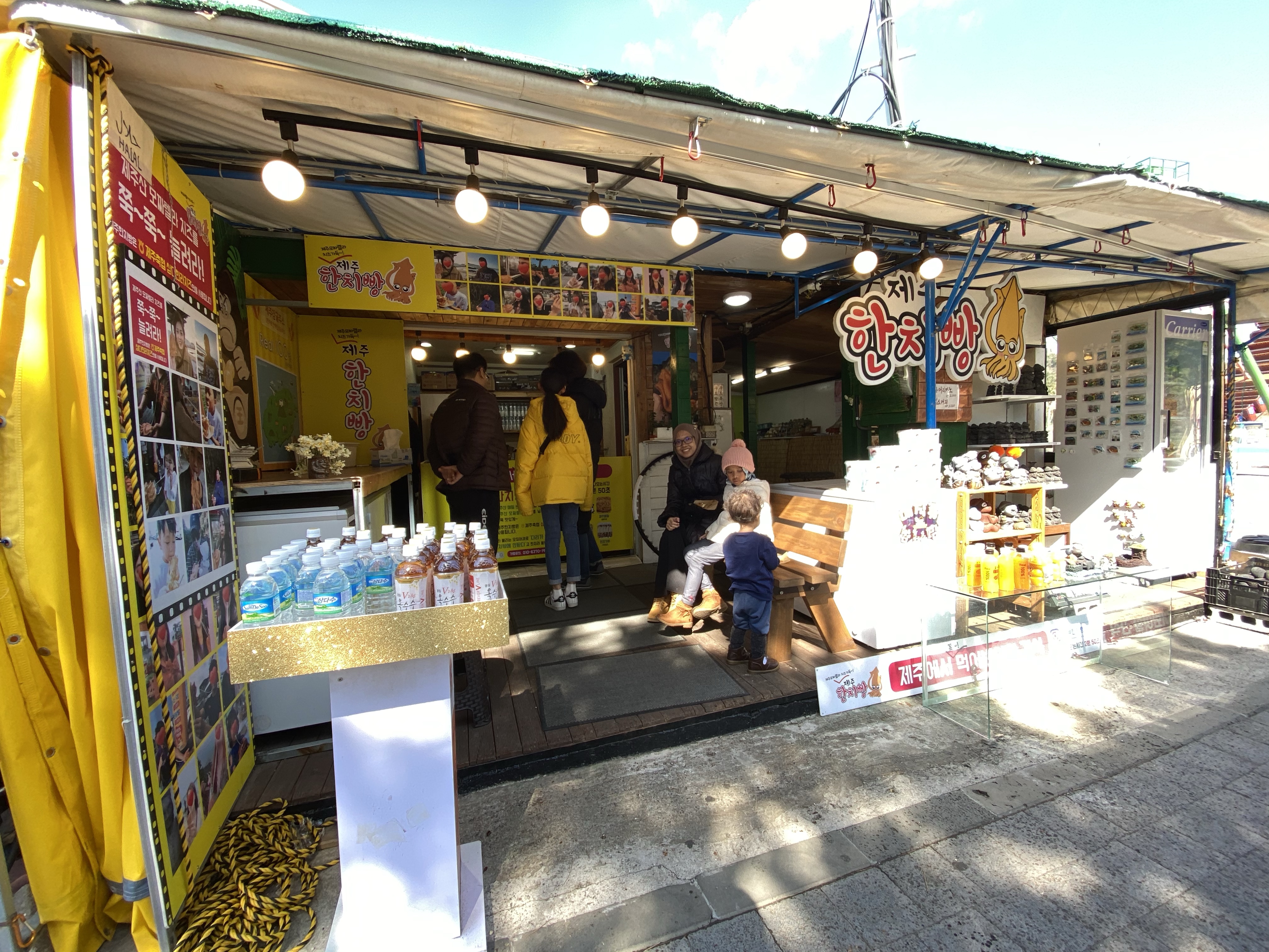Sampai aje Yongmeori Coast ni Alhamdulillah ada parking. So kami park dan duduk relax dulu dalam kereta. Kemudian keluar dari kereta gi makan kuih sotong halal. Banyak orang Malaysia datang kedai dia. Aku minum air oren dia sedap betul. Memang sini tanah tanaman oren dia sedap dia lain macam. Tanah gunung berapi katakan.