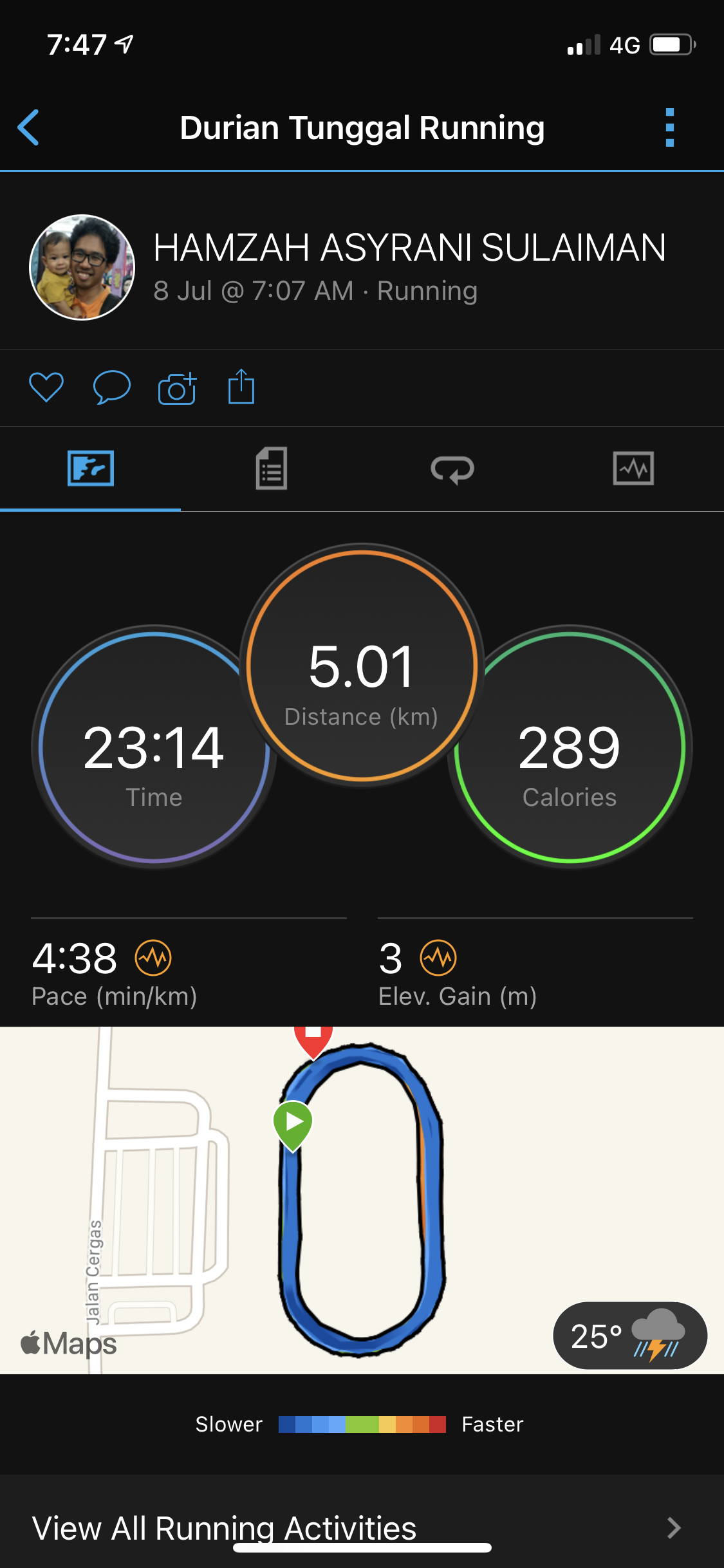 Hampir 2 minggu dah aku start training larian aku balik. Aku just buat pun larian sekadar 3km dan 5km buat masa ni. Masih belum pergi lagi ke arah long run walaupun itu yg diperlukan. Aku memang set setakat ini jenis latihan incremental. Aku bawak dulu 3km. Biar selama beberapa minggu sampai dah adapt badan baru move to 4,5 km on road dan seterusnya. Kat track memang aku set 5km aje lebih memang mental la pusing lebih dari 12 rounds sensorang.