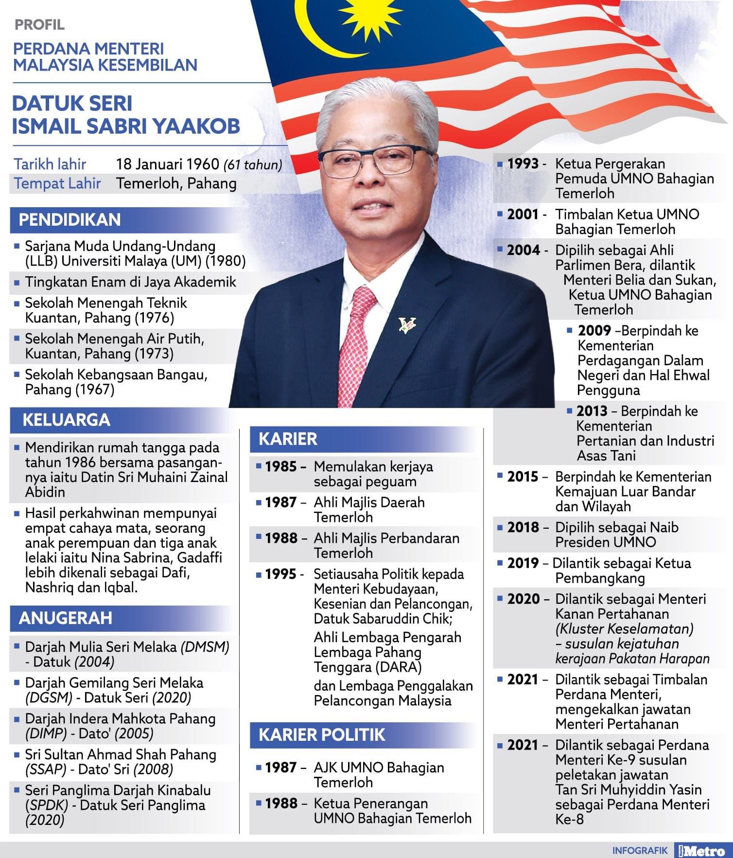 Perdana Menteri baru ke-9 adalah Dato Sri Ismail Sabri dari UMNO