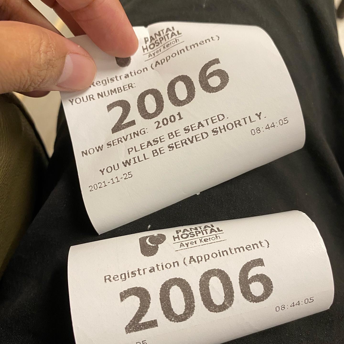 sekitar jam 8.15 pagi aku tiba di aras 4 tempat daftar health screening. Time tu ada dalam 10 orang dah kot termasuk pekerja baru infineon. Infineon punya staff ni depa ada bilik khas dikumpulkan. Aku dan lain-lain duduk ruangan yang utama. So aku dapatla nombor 2006. Kena duduk dalam 15-20 minit gak sebelum dipangghil daftar. Untuk makluman, aku dah 5 tahun health screening kat Pantai Hospital ni. So dah familiar dah procedure dan orang pun dah kenal staff2 sini. So mmg kene tegurlah orang2 sini sebab itulah Malaysia. Bila ko kenal orang dan orang kenal ko, kene saling tegur.