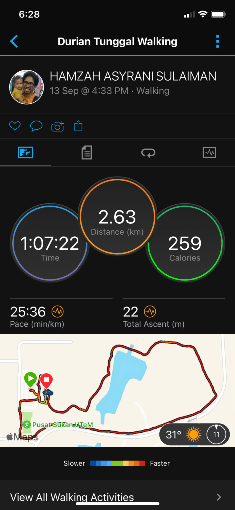 Setel aje acara brisk walk ni sempat kitorang berjogging aku, Anas and Rafis. Pusing kampus dalam 5 km aje.