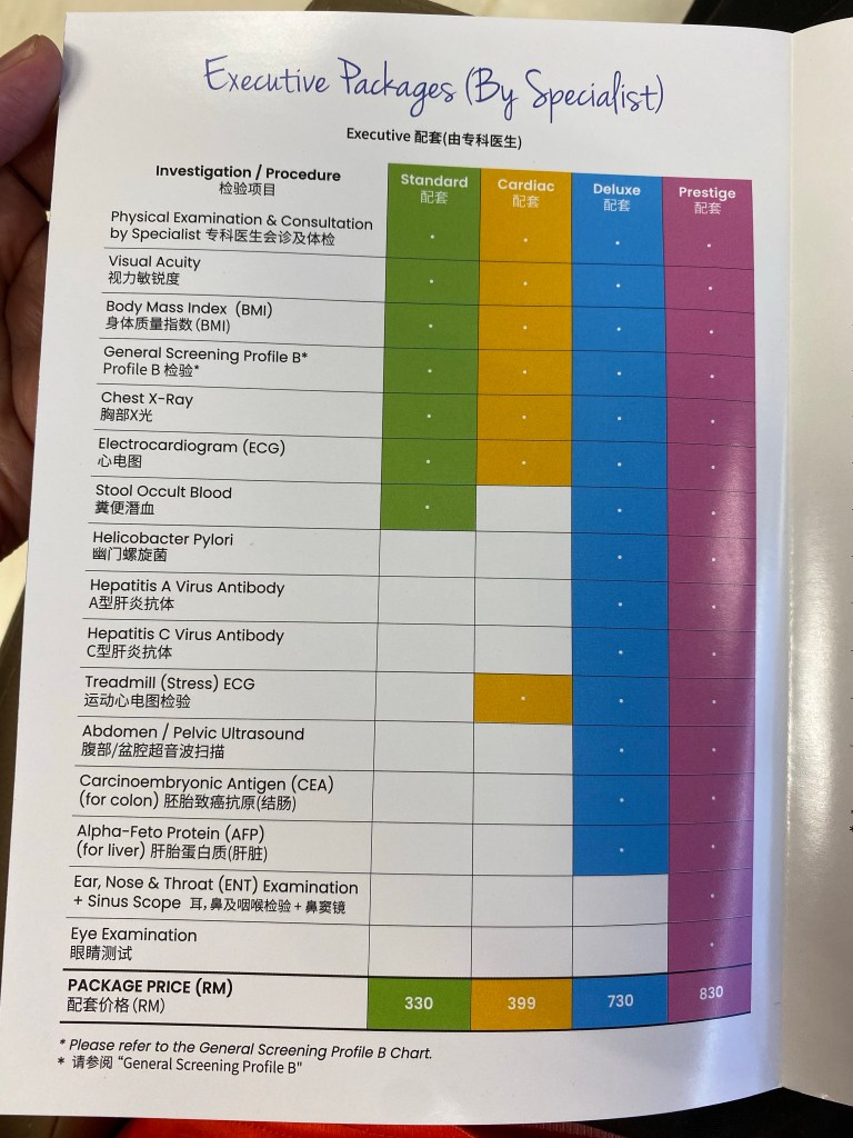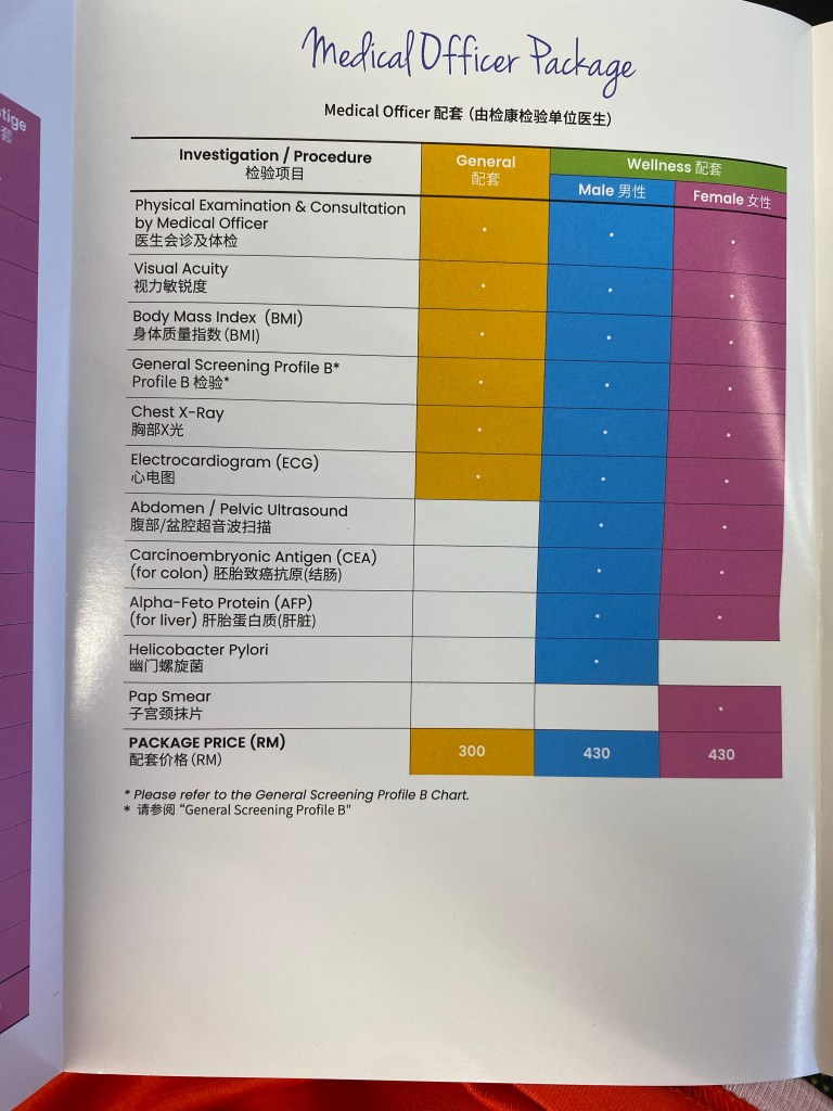 Aku buat ni under pakej 15 tahun yang aku subscribe dari 2015 mase umur aku 30 tahun. Skg dah 37 tahun. So total 8 tahun sebab tahun 2015 first check up full umur 30, jadi skg dah tahun ke 8. Lagi 7 tahun baki. Pakej ni bernilai RM24200 Time tu aku bayar secara ansuran selama 3 tahun bg cukupkan 24,200 tu. Dan yuran tahunan masa nak buat check up adalah RM1280 untuk kedua duanya.