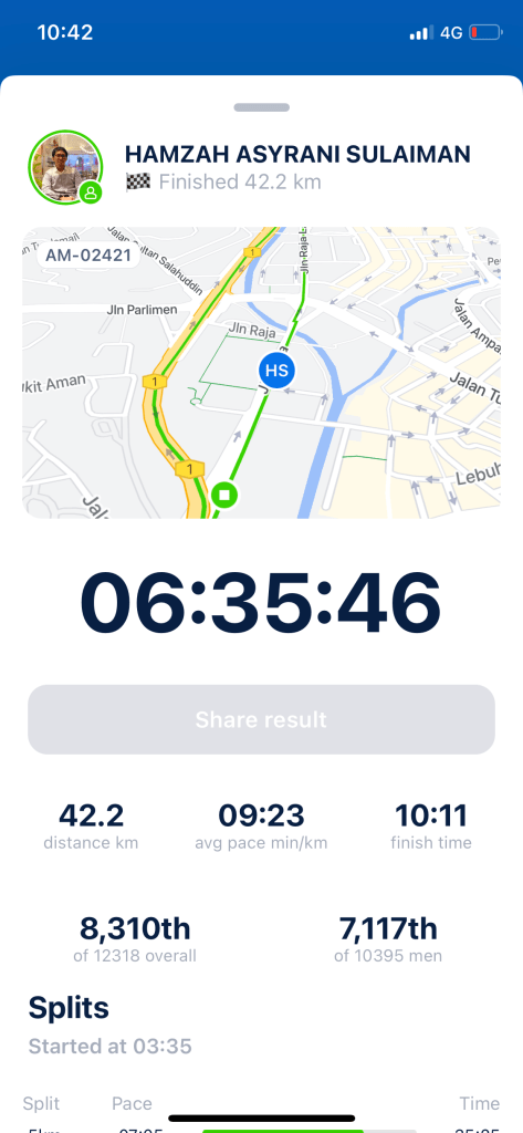 41-42km: guna tenaga yang ada aje untuk berlari. Alhamdulillah dapat selesaikan.
