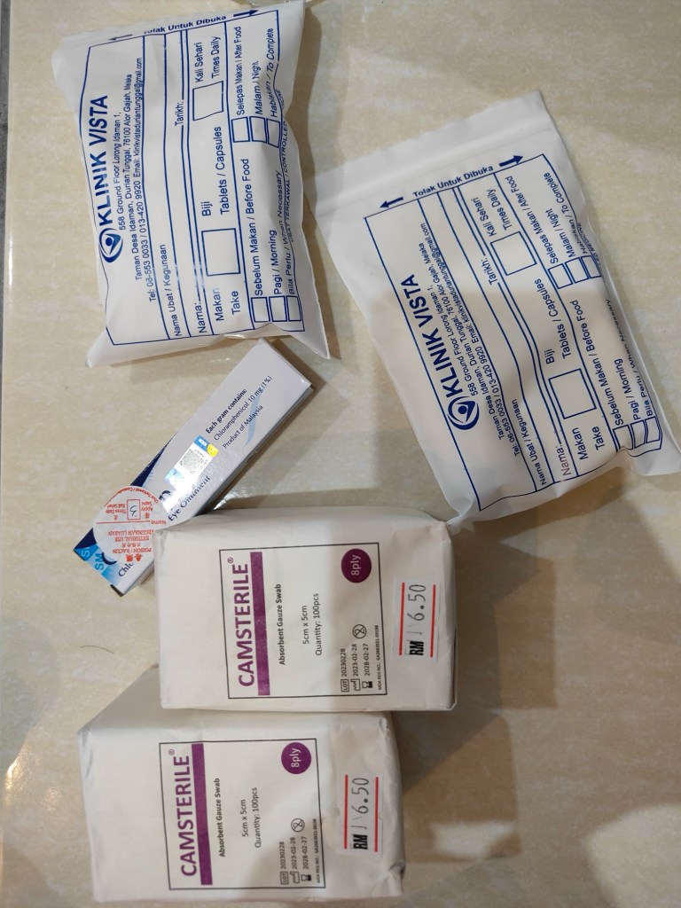 5. Span Gauze beli dalam dua tiga pack dekat farmasi. Naklap2 luka dan air lepas mandi kat area sunat. Slow2 lap ye. Guna Tisu biasa aje lepas hari ketiga-keempat.