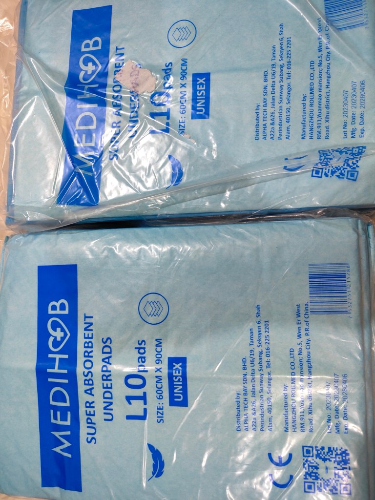 1. Disposable Underpad – Lapik tempat dia nak baring sebab boleh terus buang bila ada terkena luka/kencing/dll
