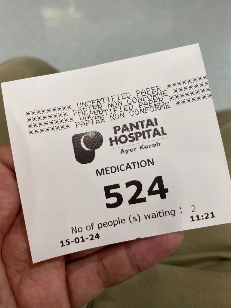 So, dalam jam 2 lebe bertolak dan sampai area jam 3 petang juga di Dr. Shaharudin klinik di Hospital Pantai. Selesai sign some forms and then tunggu di bahagian kaunter di bawah untuk admit masuk wad.