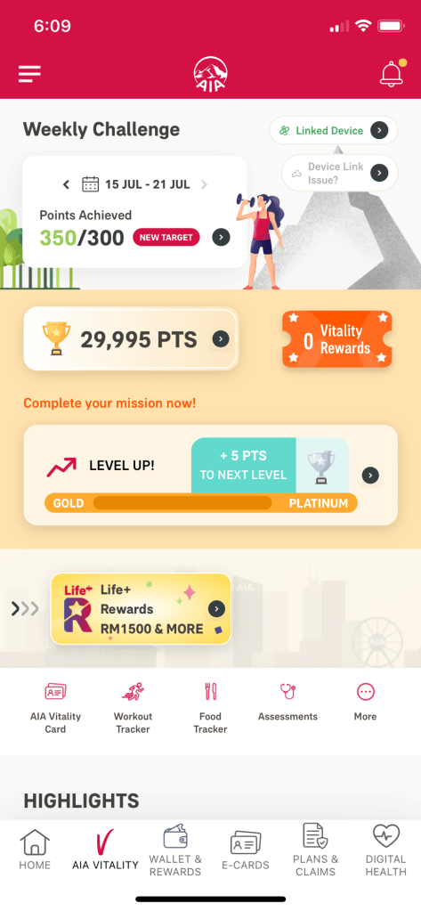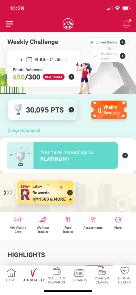 Sejak dari 5 Disember 2024, hari ini 19 Julai 2024, berjaya mendapatkan Platinum status dari AIA VITALITY.