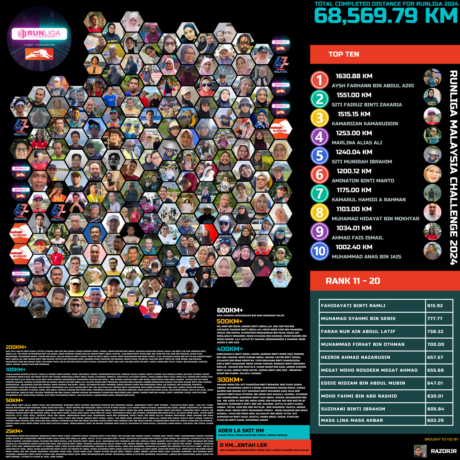 Team Kuatagh Runners berjaya mendapatkan kedudukan ke-5 keseluruhan Runliga 2024 kali ini.