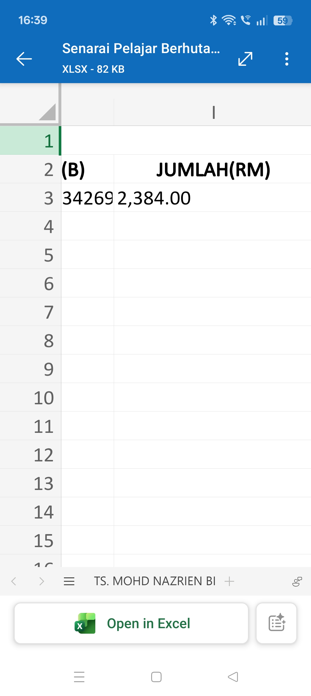 Ini jumlah hutang yang berjaya dikurangkan oleh student under aku as Penasihat Akademik (PA) Dari RM3k lebe.