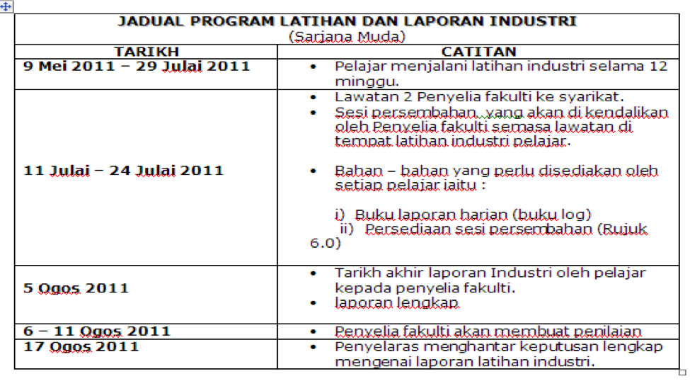 Please also make sure to inform “JADUAL A” below to your company. Official Letter will be fax/email/phone/etc to the company