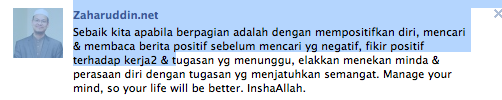 Boleh subscribe ke Facebook Ustaz Dr. Zaharuddin untuk pelbagai nasihat dan pandangan