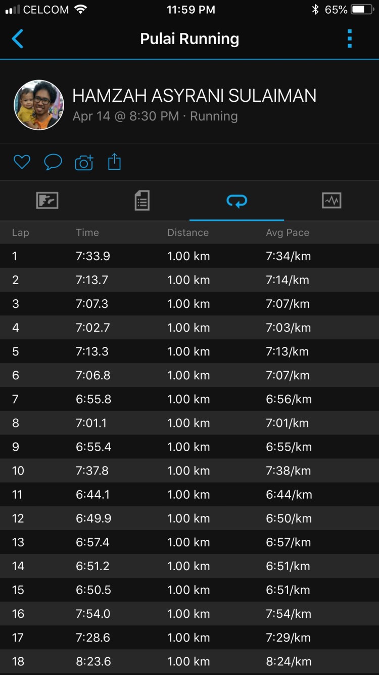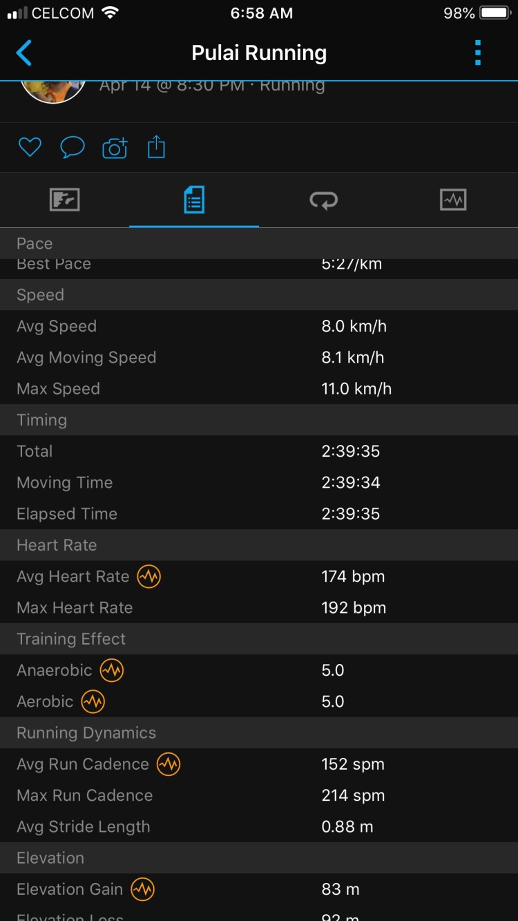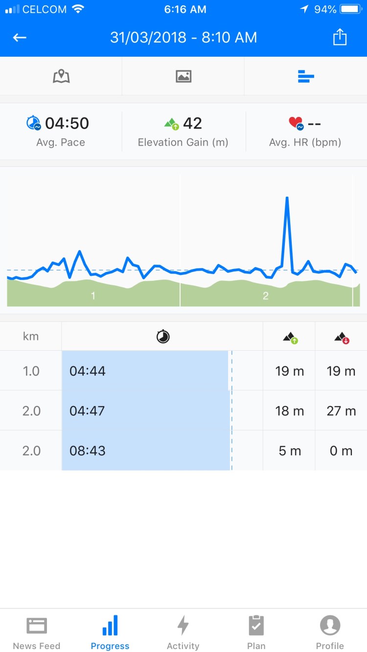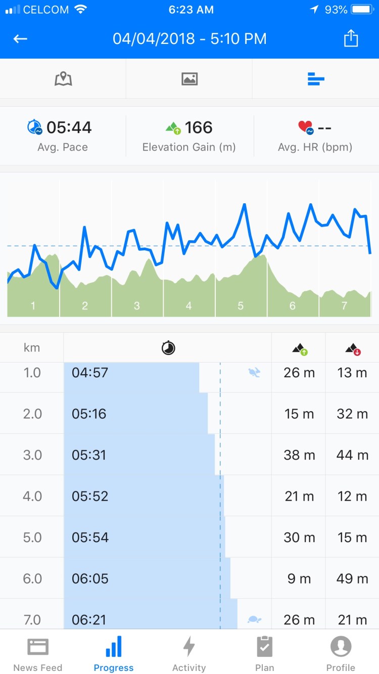 15km Running = 1:25:57 (August 2018)