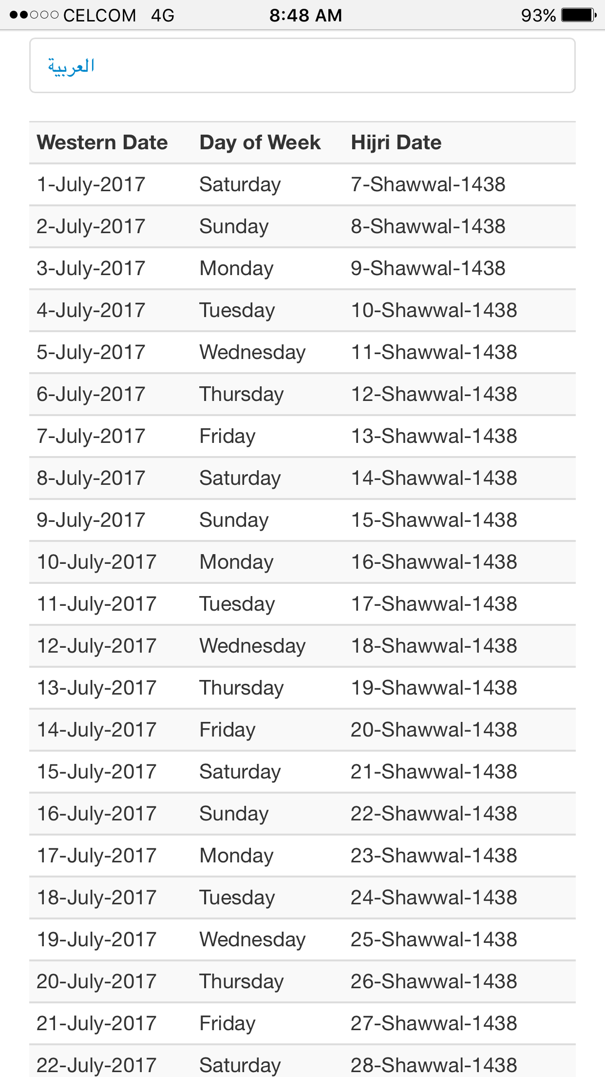 - 27 July (Khamis 10 am) – 205 (Turun 9)