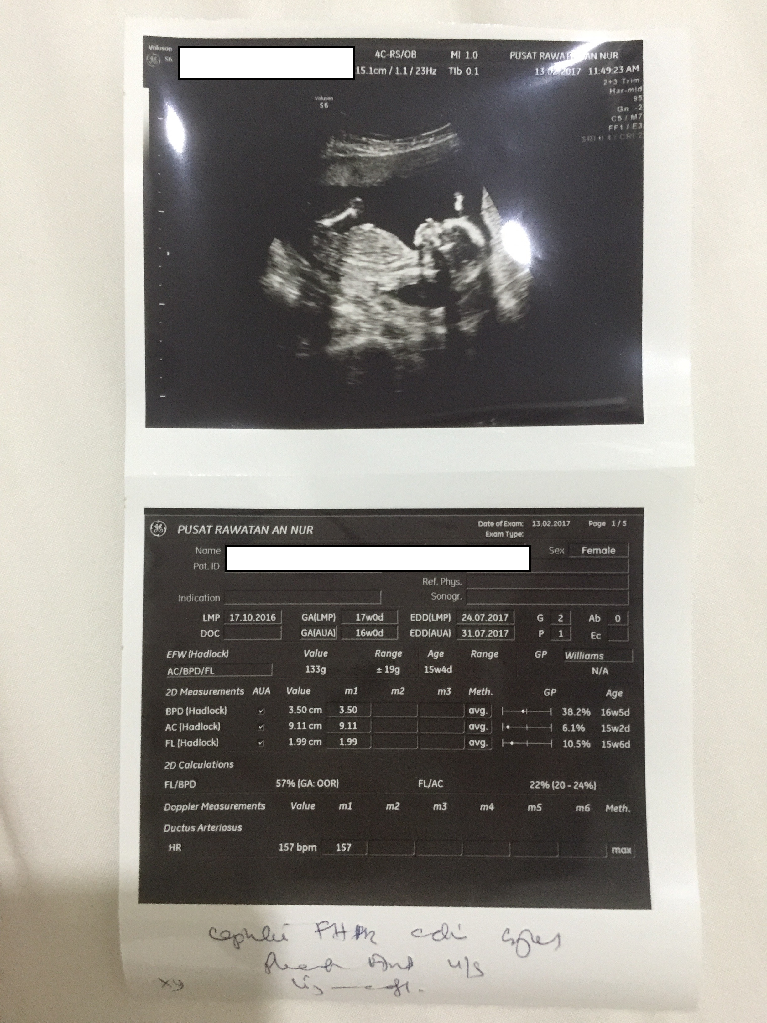 - Next adalah scan pada pertengahan February dan kemudian ke klinik kesihatan scan pada March 2017.