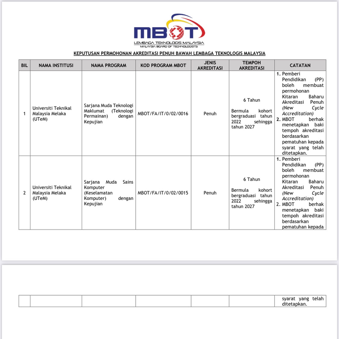 Alhamdulillah Program Game kat UTeM dapat 6 tahun akreditasi penuh oleh MBOT. Bertungkus lumus dari awal 2022 rasenye sehingga hujung 2022 bab nak menyediakan laporan. Mcm2 diminta dan sehingga last minit pun ada dokumen tak lengkap dan diperlukan oleh MBOT. Tp kami berusaha penuhinya. Dan Alhamdulillah tahun 2023 ini: Betapa gembiranya aku sebab BITE dptContinue reading “MBOT for GAME TECH”